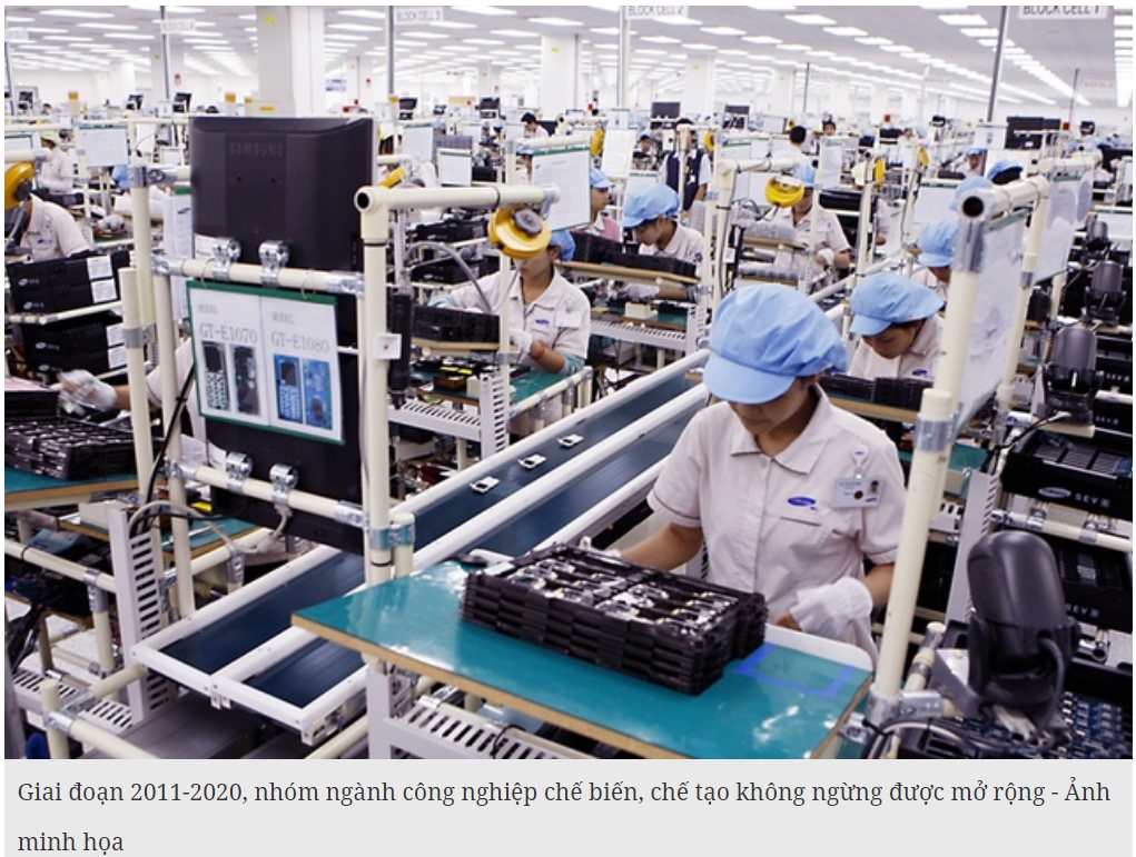Xét cả giai đoạn 2011-2020, nhóm ngành công nghiệp chế biến, chế tạo không ngừng được mở rộng và chiếm tỉ trọng cao nhất trong các ngành công nghiệp với đóng góp trong GDP tăng liên tục qua các năm (tăng từ 13% năm 2010 lên 14,27% năm 2016; 16,48% vào năm 2019 và đạt khoảng 16,7% vào năm 2020). Năm 2020, công nghiệp chế biến, chế tạo đóng vai trò chủ chốt dẫn dắt tăng trưởng của nền kinh tế với mức tăng 5,82%.
