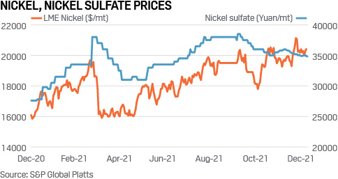 Nhu cầu nickel cho ngành sản xuất pin ở Trung Quốc, nhà cung cấp pin EV lớn nhất thế giới, đang tăng nhanh dưới hình thức nhập khẩu nickel sunphat siêu tích điện. Lượng nhập khẩu mặt hàng này trong 10 tháng đầu năm 2021 đạt 35.900 tấn, tăng so với chỉ 4.800 tấn trong 10 tháng đầu năm 2020.