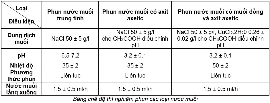 - Sau khi thí nghiệm kết thúc, để mẫu khô tự nhiên 0.5-1 giờ, sau đó rửa nhẹ để loại bỏ muối còn đọng lại trên mẫu, phun không khí nén, kiểm tra đánh giá sản phẩm